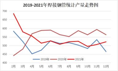 圖3 2019-2021年我國焊管月度產量走勢