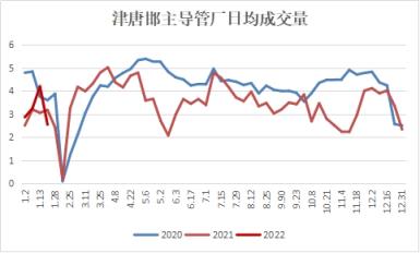 一月鋼市主要圍繞宏觀、冬儲及供應端的不確定性運行。2022年開年相比去年,外部影響因素減弱,同時經濟動能呈現放緩趨勢,宏觀調控力度加大,托底預期成為春節后行情的重要支撐之一;經濟穩增長與冬奧會管控相較量,生產端受限的預期是第二要素;對于焊鍍管品種來看,上下游冬儲處于正常偏低水平,春儲的接力需求是第三要素。2月下旬預期驅動減弱,基本面將考驗現實需求的進度對供應復產的承接。而唐山地區帶鋼冬儲資源集中在4650元左右,成本影響將不斷上升,因此預計2月焊鍍管市場將積極跟進期貨及上游價格,實現先漲后調,而強勢調整則預估出現在3月4日兩會經濟方向的定調后及3月中旬上下游強勢復工、復產階段。