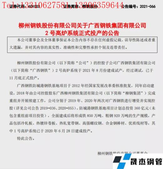 免責聲明:本網站(山東聊城晟杰無縫鋼管廠m.gdqiayu.com)刊載的“重磅!12月10大鋼鐵項目投產、復產!”等均源于網絡,版權歸原作者所有,且僅代表原作者觀點,本文所載信息僅供參考。轉載僅為學習與交流之目的,如無意中侵犯您的合法權益,請及時聯系刪除。本網站刊登此篇文章并不意味著本站贊同其觀點或證實其內容的真實性,我們不對其科學性、嚴肅性等作任何形式的保證。如果侵犯了您的版權,請盡快聯系我們予以撤銷,謝謝合作!