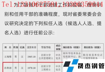 免責聲明:本網站(山東聊城晟杰無縫鋼管廠m.gdqiayu.com)刊載的“大變動!涉及多家鋼企董事長、多地市委書記、北大系主任!”等均源于網絡,版權歸原作者所有,且僅代表原作者觀點,本文所載信息僅供參考。轉載僅為學習與交流之目的,如無意中侵犯您的合法權益,請及時聯系刪除。本網站刊登此篇文章并不意味著本站贊同其觀點或證實其內容的真實性,我們不對其科學性、嚴肅性等作任何形式的保證。如果侵犯了您的版權,請盡快聯系我們予以撤銷,謝謝合作!
