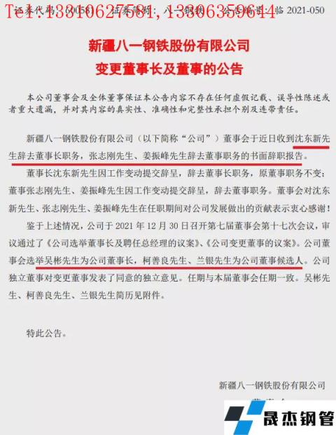 2021年12月31日,八一鋼鐵發布公告,董事會于近日收到沈東新先生辭去董事長職務,張志剛先生、姜振峰先生辭去董事職務的書面辭職報告。總經理張春輝、副總經理劉一平先生、王炳先生、蔡建新先生以及總工程師唐年先生提交書面辭職報告。