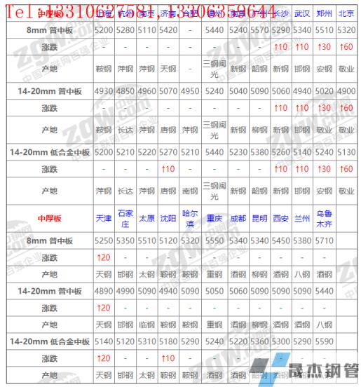 全國23個主要市場14-20mm 低合金中板平均價格5260元/噸,較上個交易日上調8元/噸。