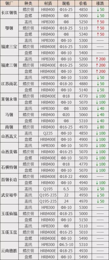 今日建材市場穩中調整,漲跌互現。期螺震蕩上行,華北地區悲觀情緒有所緩解,終端按需采買,低位出貨有所改觀。西南地區持續走弱,價格下挫,無縫鋼管廠家成本所限,降價意愿不高。節后需求逐步打開,預計明日建材市場價格穩中偏強。
