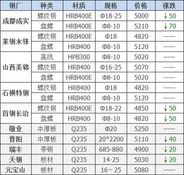 下調10家,占比58.9%,調價幅度10-70元/噸,
