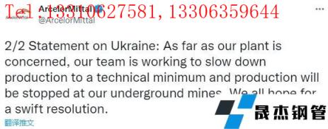 免責聲明:本網站(山東聊城晟杰無縫鋼管廠m.gdqiayu.com)刊載的“突襲之下,烏克蘭無縫鋼管廠相繼停產運輸中斷,鋼價會暴漲嗎?”等均源于網絡,版權歸原作者所有,且僅代表原作者觀點,本文所載信息僅供參考。轉載僅為學習與交流之目的,如無意中侵犯您的合法權益,請及時聯系刪除。本網站刊登此篇文章并不意味著本站贊同其觀點或證實其內容的真實性,我們不對其科學性、嚴肅性等作任何形式的保證。如果侵犯了您的版權,請盡快聯系我們予以撤銷,謝謝合作!
