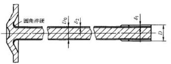 ▲圖3半軸工藝淬火硬化層與強度分布a)太淺b)合適c)太深桿部:硬化層深度應達到桿部直徑的15%(δ2=15%D0)。法蘭根部:要求法蘭盤與桿部連接的過渡圓角淬硬。在實際生產中,圓角處硬化區域的最小直徑應比半軸桿部直徑大25%。這些要求是為了保證半軸的靜強度和疲勞強度?;ㄦI與桿部的淬硬層深度對靜強度影響較大,法蘭圓角淬硬對疲勞極限影響較大。每種表面淬火半軸都有最佳的硬化層深,應考慮到硬化層深對表層殘留壓應力的影響。表6 列出了直徑為50mm的帶法蘭半軸感應加熱淬火后花鍵尾根部位的殘留壓應力。通常,感應加熱淬火硬化層深度可以根據半軸桿部直徑的大小和產品設計結構形狀來確定。對輕型載重車和小轎車的法蘭盤式半軸(桿部直徑在50mm以下)淬硬層深度可按下列要求確定(參閱圖4)。