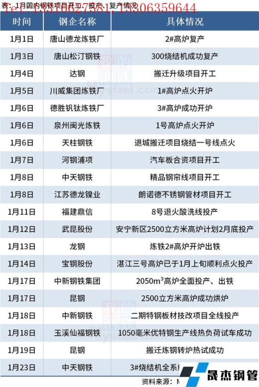 免責聲明:本網站(山東聊城晟杰無縫鋼管廠m.gdqiayu.com)刊載的“1月國內20個鋼鐵項目開工、投產和復產”等均源于網絡,版權歸原作者所有,且僅代表原作者觀點,本文所載信息僅供參考。轉載僅為學習與交流之目的,如無意中侵犯您的合法權益,請及時聯系刪除。本網站刊登此篇文章并不意味著本站贊同其觀點或證實其內容的真實性,我們不對其科學性、嚴肅性等作任何形式的保證。如果侵犯了您的版權,請盡快聯系我們予以撤銷,謝謝合作!