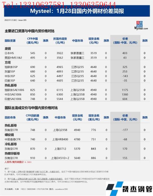 免責聲明:本網站(山東聊城晟杰無縫鋼管廠m.gdqiayu.com)刊載的“2022年01月28日日報:國內外鋼材_無縫鋼管價差匯總(2022.1.28)”等均源于網絡,版權歸原作者所有,且僅代表原作者觀點,本文所載信息僅供參考。轉載僅為學習與交流之目的,如無意中侵犯您的合法權益,請及時聯系刪除。本網站刊登此篇文章并不意味著本站贊同其觀點或證實其內容的真實性,我們不對其科學性、嚴肅性等作任何形式的保證。如果侵犯了您的版權,請盡快聯系我們予以撤銷,謝謝合作!