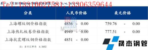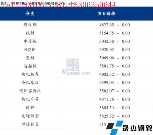 免責聲明:本網站(山東聊城晟杰無縫鋼管廠m.gdqiayu.com)刊載的“2022年01月30日日報:鋼材_無縫鋼管價格指數持平”等均源于網絡,版權歸原作者所有,且僅代表原作者觀點,本文所載信息僅供參考。轉載僅為學習與交流之目的,如無意中侵犯您的合法權益,請及時聯系刪除。本網站刊登此篇文章并不意味著本站贊同其觀點或證實其內容的真實性,我們不對其科學性、嚴肅性等作任何形式的保證。如果侵犯了您的版權,請盡快聯系我們予以撤銷,謝謝合作!