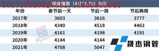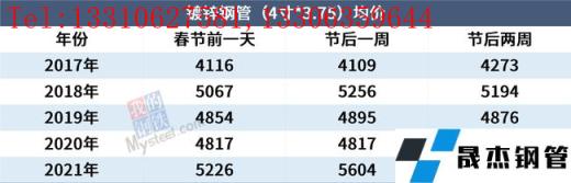 免責聲明:本網站(山東聊城晟杰無縫鋼管廠m.gdqiayu.com)刊載的“近5年春節前后鋼材_無縫鋼管市場走勢”等均源于網絡,版權歸原作者所有,且僅代表原作者觀點,本文所載信息僅供參考。轉載僅為學習與交流之目的,如無意中侵犯您的合法權益,請及時聯系刪除。本網站刊登此篇文章并不意味著本站贊同其觀點或證實其內容的真實性,我們不對其科學性、嚴肅性等作任何形式的保證。如果侵犯了您的版權,請盡快聯系我們予以撤銷,謝謝合作!
