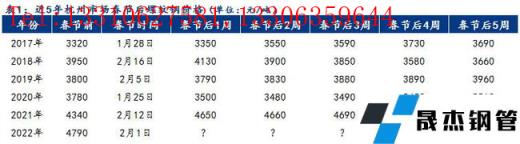 免責聲明:本網站(山東聊城晟杰無縫鋼管廠m.gdqiayu.com)刊載的“近5年春節前后杭州螺紋鋼庫存和市場走勢”等均源于網絡,版權歸原作者所有,且僅代表原作者觀點,本文所載信息僅供參考。轉載僅為學習與交流之目的,如無意中侵犯您的合法權益,請及時聯系刪除。本網站刊登此篇文章并不意味著本站贊同其觀點或證實其內容的真實性,我們不對其科學性、嚴肅性等作任何形式的保證。如果侵犯了您的版權,請盡快聯系我們予以撤銷,謝謝合作!