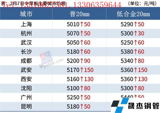 中厚板:2月7日,全國24個主要城市20mm普板均價5171元/噸,較節前(1月30日)上漲88元/噸。今日市場情況來看,大多數商家并沒有開工,市場報價稀少,基本無成交。鋼坯大幅上漲,中板現貨漲價主要是以補漲疊加開始后預期為主,其中華北區域上漲積極,無縫厚壁鋼管廠家主動抬升價格,引領現貨上行,空漲現象較為明顯。需求來看,下游企業正常開工多在初十左右,故后兩日成交不會有明顯恢復。綜合預計,8日中厚板價格繼續上漲。