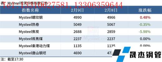 免責聲明:本網站(山東聊城晟杰無縫鋼管廠m.gdqiayu.com)刊載的“2022年02月09日晚餐:黑色期貨全線跳水,鋼坯利潤升至345元”等均源于網絡,版權歸原作者所有,且僅代表原作者觀點,本文所載信息僅供參考。轉載僅為學習與交流之目的,如無意中侵犯您的合法權益,請及時聯系刪除。本網站刊登此篇文章并不意味著本站贊同其觀點或證實其內容的真實性,我們不對其科學性、嚴肅性等作任何形式的保證。如果侵犯了您的版權,請盡快聯系我們予以撤銷,謝謝合作!