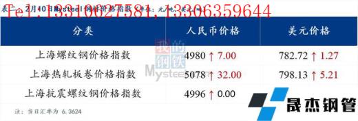 免責聲明:本網站(山東聊城晟杰無縫鋼管廠m.gdqiayu.com)刊載的“2022年02月10日日報:鋼材_無縫鋼管價格指數上漲6.36元/噸”等均源于網絡,版權歸原作者所有,且僅代表原作者觀點,本文所載信息僅供參考。轉載僅為學習與交流之目的,如無意中侵犯您的合法權益,請及時聯系刪除。本網站刊登此篇文章并不意味著本站贊同其觀點或證實其內容的真實性,我們不對其科學性、嚴肅性等作任何形式的保證。如果侵犯了您的版權,請盡快聯系我們予以撤銷,謝謝合作!