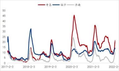 本周山東地區市場價格呈現盤整趨強的走勢,但市場成交弱勢,整體資源情況出現明顯變化。具體來看,本周山東各市場庫存情況如下: