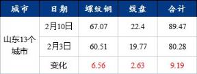 分品種來看,本周山東13個市場建筑厚壁無縫鋼管總庫存為89.47萬噸,周環比增加9.19萬噸,漲幅為11.45%。其中螺紋鋼庫存67.07萬噸,周環比增加6.56萬噸;線盤22.4萬噸,周環比增加2.63萬噸。