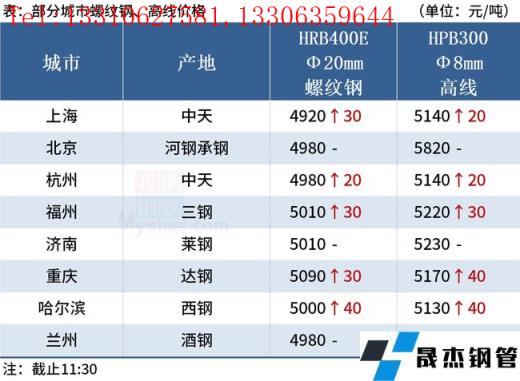◎杭州:11日早盤杭州優特鋼市場價格部分漲20?,F45#Φ30以上主流價格杭5470淮5470南5460,元立(直發)5450中天5460東方5400,40Cr杭5680淮5730;齒輪萊鋼5900,鉻鉬建龍6030淮鋼6080。(單位:元/噸)