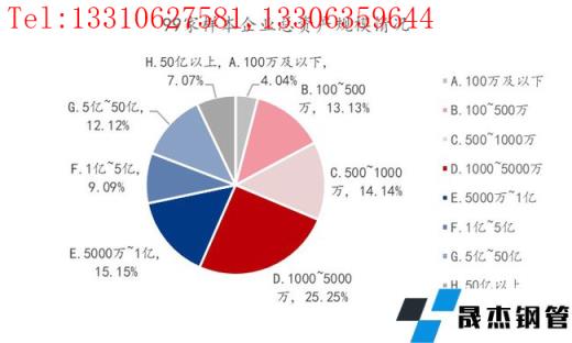 從圖4上看,1000萬元以下規模的企業占比為31.31%;1000萬-5000萬元規模的企業占比為25.25%;5000萬-5億元規模的企業占比為24.24%;5億-50億元規模的企業占比為12.12%;50億元以上規模的企業占比為7.07%