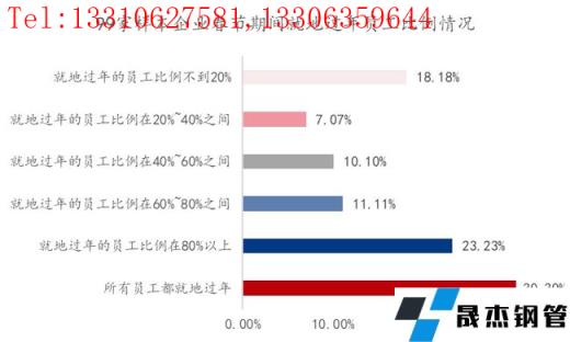 從圖6上看,就地過年的員工比例不到20%的占比為18.18%;就地過年的員工比例在20%-60%的占比為17.17%;就地過年的員工比例在60%-80%的占比為11.11%;就地過年的員工比例在80%以上的占比為23.23%;所有員工都就地過年的占比為30.30%。