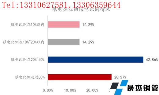 從圖18上看,7.07%的樣本企業存在限電影響中,具體限電比例在10%與10%-20%以內的占比28.57%;限電比例在20%-40%的占比在42.86%;限電比例超過80%的占比在28.57%。
