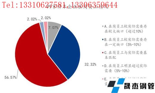 從圖21上看,對比實際經營需要,目前企業在崗員工超過實際需要5%-10%及以上的占比4.04%,與實際需要基本匹配的占比為56.67%,與實際需要存在一定缺口在5%-10%及以上的占比為39.39%。