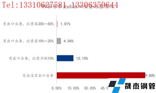 從圖23上看,完全沒有出口業務的企業占比為79.80%;有出口業務比重不到10%的企業占比為15.15%;有出口業務比重在10%-20%的企業占比為4.04%;有出口業務比重在20%-50%的企業占比為1.01%。