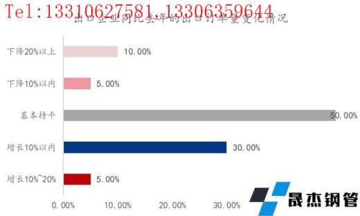 從圖26上看,20.20%的出口企業中,出口價格呈現不同程度上漲的企業占比為40%,基本持平的企業占比為55%,呈現不同程度下降的企業占比為5%。