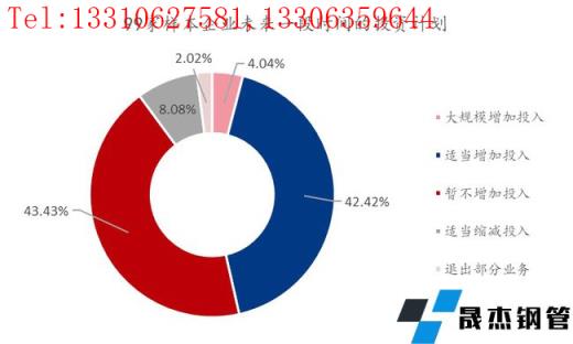 從圖30上看,未來一段時間企業會大規模增加投入的占比為4.04%,適當增加投入的占比為42.42%,暫不增加投入的占比為43.43%,適當縮減投入的占比為8.08%,退出部分業務的占比為2.02%。