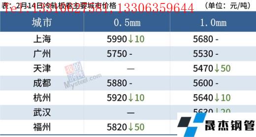 冷軋板卷:2月14日,全國24個主要城市1.0mm冷卷均價5611元/噸,較上個交易日下跌9元/噸。今日開盤黑色系期貨價格寬幅走跌,熱軋現貨價格大幅回落,冷軋市場部分城市跟跌。據反饋,商戶全面復工復產,下游終端用戶采購積極性偏差,冷軋成交偏弱。心態面看,市場商戶對本周行情整體偏謹慎,局部市場庫存壓力較大,商戶多出貨為主。預計15日全國冷軋板卷現貨價格多震蕩下調為主。