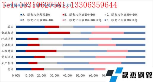 根據690余家企業反饋的限電比例情況,多數企業限電在20%-40%和10%-20%區間,占比分別為23.31%和22.30%,限電比例低于20%的企業約40%,而限電較為嚴重、比例超過60%的企業占20%水平。各行業限電比例分布差異不是特別大。
