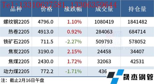 免責聲明:本網站(山東聊城晟杰無縫鋼管廠m.gdqiayu.com)刊載的“2022年02月16日午報:鋼價局部反彈,鋼材_無縫鋼管和焦炭期貨上漲”等均源于網絡,版權歸原作者所有,且僅代表原作者觀點,本文所載信息僅供參考。轉載僅為學習與交流之目的,如無意中侵犯您的合法權益,請及時聯系刪除。本網站刊登此篇文章并不意味著本站贊同其觀點或證實其內容的真實性,我們不對其科學性、嚴肅性等作任何形式的保證。如果侵犯了您的版權,請盡快聯系我們予以撤銷,謝謝合作!
