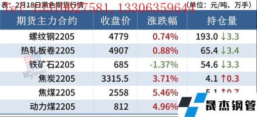 熱軋板卷:2月18日,全國24個主要城市4.75mm熱軋板卷均價5007元/噸,較上個交易日下跌3元/噸。據2月17日公布的數據來看,熱軋板卷周度產量及社會庫存均出現回升,當前冬奧會對熱卷產量影響弱于預期,無縫厚壁鋼管廠家存在復產預期,另外受全國范圍內疫情的影響,下游復工進度偏慢,需求尚未完全釋放。但前期原料端政策調控放緩,市場情緒基本釋放完畢,以及元宵節后多數企業生產將陸續恢復,需求將逐漸啟動,價格下行空間收窄。綜合來看,預計下周熱軋板卷價格或將維持震蕩為主。