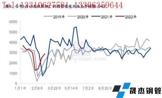 由于廢鋼的定價權基本掌握在無縫厚壁鋼管廠家手中,其價格彈性往往大于成材,如果行情不好導致成材價格出現下跌,那么無縫厚壁鋼管廠家就會降低自身的廢鋼消耗量,下調廢鋼價格,所以廢鋼價格可以看成是隨著成材價格走勢而變化,處于相對被動的位置。由圖2可以看出,從近三年的價格走勢可以看出,廢鋼價格與五大材的價格走勢關聯性很高。今年1月以來截止當前廢鋼的漲幅為2.49%,五大材的漲幅也均在2%-3%之間,所以今年1月份以來成材價格上漲也支撐了廢鋼價格的上漲。