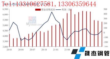 長流程無縫厚壁鋼管廠家,以鞍鋼為例,鞍鋼2月份結算價,到上海碼頭的實際成本分別是5430元/噸,入庫費用加15元/噸;短流程無縫厚壁鋼管廠家而言, 鞍鋼天鐵出臺1月份結算價,減完最大優惠,出廠含稅成本為 5300元/噸,截至2月18日上海市場鞍鋼1.0mm現貨價格在5530元/噸左右,因此長流程無縫厚壁鋼管廠家利潤約185元/噸,短流程利潤330元/噸。