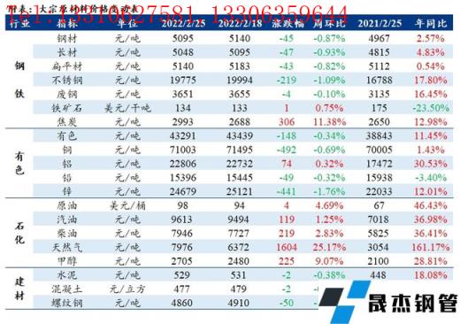 免責聲明:本網站(山東聊城晟杰無縫鋼管廠m.gdqiayu.com)刊載的“周報:大宗原材料價格周報(2.21-2.25)”等均源于網絡,版權歸原作者所有,且僅代表原作者觀點,本文所載信息僅供參考。轉載僅為學習與交流之目的,如無意中侵犯您的合法權益,請及時聯系刪除。本網站刊登此篇文章并不意味著本站贊同其觀點或證實其內容的真實性,我們不對其科學性、嚴肅性等作任何形式的保證。如果侵犯了您的版權,請盡快聯系我們予以撤銷,謝謝合作!