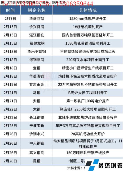 免責聲明:本網站(山東聊城晟杰無縫鋼管廠m.gdqiayu.com)刊載的“2月國內18個鋼鐵項目開工、投產和復產”等均源于網絡,版權歸原作者所有,且僅代表原作者觀點,本文所載信息僅供參考。轉載僅為學習與交流之目的,如無意中侵犯您的合法權益,請及時聯系刪除。本網站刊登此篇文章并不意味著本站贊同其觀點或證實其內容的真實性,我們不對其科學性、嚴肅性等作任何形式的保證。如果侵犯了您的版權,請盡快聯系我們予以撤銷,謝謝合作!