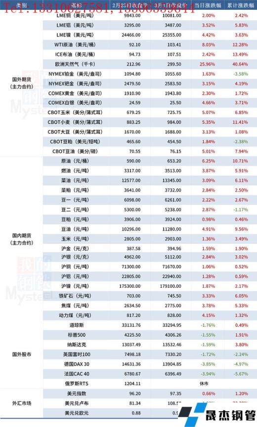 免責聲明:本網站(山東聊城晟杰無縫鋼管廠m.gdqiayu.com)刊載的“受近期局勢影響大宗商品價格一覽表(3月1日)”等均源于網絡,版權歸原作者所有,且僅代表原作者觀點,本文所載信息僅供參考。轉載僅為學習與交流之目的,如無意中侵犯您的合法權益,請及時聯系刪除。本網站刊登此篇文章并不意味著本站贊同其觀點或證實其內容的真實性,我們不對其科學性、嚴肅性等作任何形式的保證。如果侵犯了您的版權,請盡快聯系我們予以撤銷,謝謝合作!