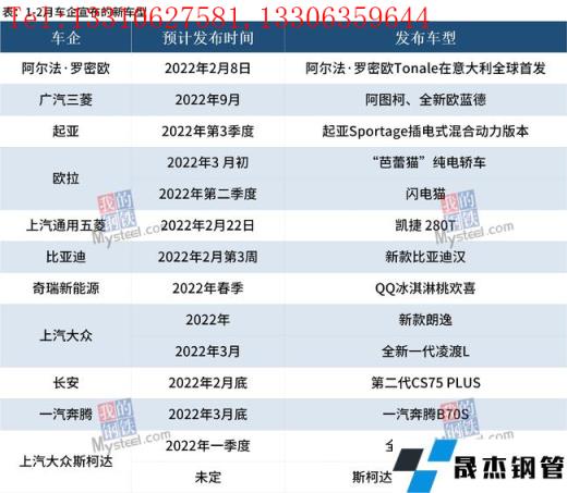 免責聲明:本網站(山東聊城晟杰無縫鋼管廠m.gdqiayu.com)刊載的“1-2月19家車企發布新車型規劃”等均源于網絡,版權歸原作者所有,且僅代表原作者觀點,本文所載信息僅供參考。轉載僅為學習與交流之目的,如無意中侵犯您的合法權益,請及時聯系刪除。本網站刊登此篇文章并不意味著本站贊同其觀點或證實其內容的真實性,我們不對其科學性、嚴肅性等作任何形式的保證。如果侵犯了您的版權,請盡快聯系我們予以撤銷,謝謝合作!