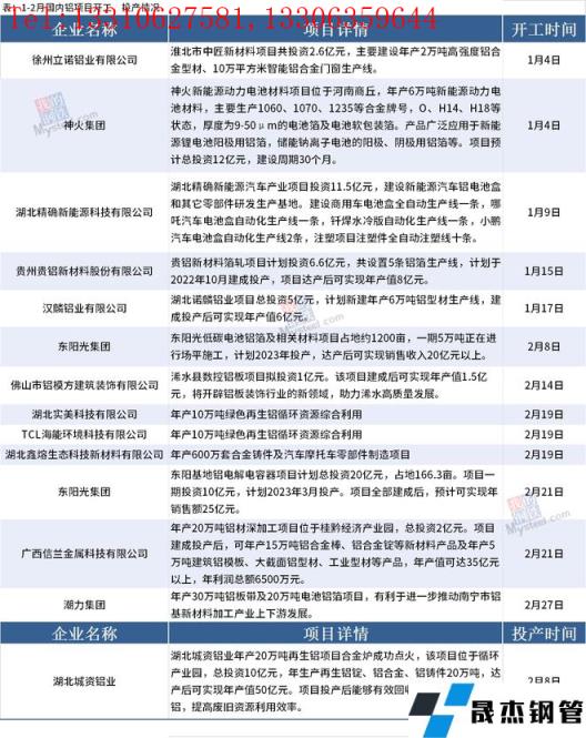 免責聲明:本網站(山東聊城晟杰無縫鋼管廠m.gdqiayu.com)刊載的“1-2月國內鋁項目開工、投產情況”等均源于網絡,版權歸原作者所有,且僅代表原作者觀點,本文所載信息僅供參考。轉載僅為學習與交流之目的,如無意中侵犯您的合法權益,請及時聯系刪除。本網站刊登此篇文章并不意味著本站贊同其觀點或證實其內容的真實性,我們不對其科學性、嚴肅性等作任何形式的保證。如果侵犯了您的版權,請盡快聯系我們予以撤銷,謝謝合作!