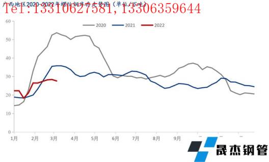 本周廣西地區螺紋資源社會庫存整體下降,商家出貨好轉。進入3月,厚壁無縫鋼管原料消息面有所放寬,需求復蘇,整個黑色系期貨近期首次出現全面大幅拉漲,市場看漲氛圍濃厚,給予市場較大的操作空間。同時,在期貨的刺激下廣西本地需求進一步釋放,周二商家迎來了出貨拐點,當天成交爆發式增長,為后續成交奠定基礎。從資源分配來看,南寧區域由于部分商家的資源從廠里直發進入工地,進入倉庫資源相對有限,因而南寧庫存出現小幅度下降。同時,柳鋼本部生產飽和度較低,廣西投放資源有限,柳州社會庫存也出現不增反降局面。價格方面,無縫厚壁鋼管廠家出廠價推漲及時,本周截至周四廣西推漲90元/噸,但從周邊市場來看,廣西價格處于低位,周邊資源流入利潤空間較少,整體流入量有所下降。截至目前,廣西市場庫存建筑厚壁無縫鋼管33.58萬噸,較上周相比減少1.02萬噸。