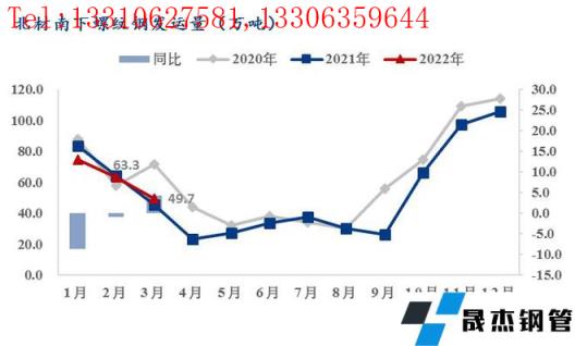 目前東北螺線庫存壓力凸顯,截止上周四東北四城市螺紋庫存約118.7萬噸同比增加10.0萬噸、盤線約29.8萬噸同比增加11.0萬噸,螺線庫存均超過了去年的峰值;但從近兩周的市場成交來看,僅遼寧地區較為活躍,黑吉兩地需求尚未啟動,實質性成交不多;再看產量,東北無縫厚壁鋼管廠家3月螺紋計劃產量約151.9萬噸同比增加26.6萬噸環比增加32.2萬噸;盤線計劃產量約80.2萬噸同比減少22.5萬噸環比增加9.1萬噸,即3月份處于較高的供應水平,疊加高位庫存,不排除無縫厚壁鋼管廠家會在減輕本地壓力的驅動下增加南下的投放。