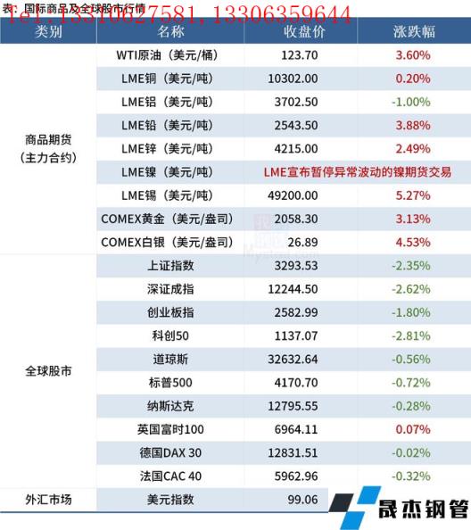 免責聲明:本網站(山東聊城晟杰無縫鋼管廠m.gdqiayu.com)刊載的“2022年03月09日早讀:LME緊急切斷鎳期貨交易,美宣布禁止進口俄羅斯石油”等均源于網絡,版權歸原作者所有,且僅代表原作者觀點,本文所載信息僅供參考。轉載僅為學習與交流之目的,如無意中侵犯您的合法權益,請及時聯系刪除。本網站刊登此篇文章并不意味著本站贊同其觀點或證實其內容的真實性,我們不對其科學性、嚴肅性等作任何形式的保證。如果侵犯了您的版權,請盡快聯系我們予以撤銷,謝謝合作!