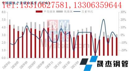 2022年2月國內主要體現為中高鎳鐵小幅減量、低鎳鐵小幅增量。中高鎳鐵方面,雖然廣西及山東個別鎳鐵冶煉廠2月產量恢復,但河北個別鎳鐵冶煉廠受到冬奧會影響停產至2月20號,遼寧、江蘇部分工廠2月產線檢修;低鎳鐵方面,雖然河南某無縫厚壁鋼管廠家2月僅一臺高爐生產,但廣東某無縫厚壁鋼管廠家高爐2月復產,低鎳鐵總體呈環比增長情況。