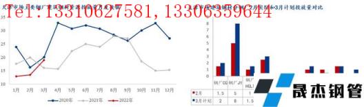 3月無縫厚壁鋼管廠家對京津冀區域投放量環比增加41.3萬噸,同比增加13.15萬噸。進入3月份,京津冀無縫厚壁鋼管廠家復產加速,整體投放量明顯上升。到貨方面以火運為主,受公共衛生事件影響,火運到貨不穩定,具體來看:1、河鋼承鋼兩螺一線在產,對京津冀投放量2月份19.5萬噸,2月份增加至26.5萬噸;2、河鋼樂鋼一條螺紋產線在產,計劃本月再復產一條,對京津冀投放增加,2月份整體9萬噸,3月份計劃增加至14.5萬噸;3、敬業無縫厚壁鋼管廠家4條螺紋產線在產,加上烏鋼資源流入,對京津冀投放量環比增加19萬噸;4、本月中旬,東華無縫厚壁鋼管廠家螺紋產線計劃復產;5、鑫達一條螺紋產線不飽和生產,2月京津冀僅投放5萬,3月份計劃投放9萬噸;5、東北西北材新撫鋼、海鑫、西林,2月份對北京市場合計投放5.3萬噸左右,2月份計劃5.5萬噸。