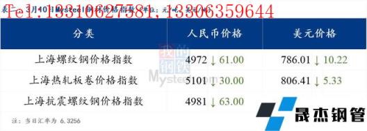 3月10日普鋼絕對價格指數變化:綜合指數5227.06,下跌43.55;螺紋鋼指數4971.9,下跌33.77;線材指數5306.03,下跌36.04;熱軋板卷指數5126.23,下跌55.04;冷軋板卷指數5596.4,下跌42.23;中厚板指數5202.78,下跌39.65。
