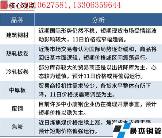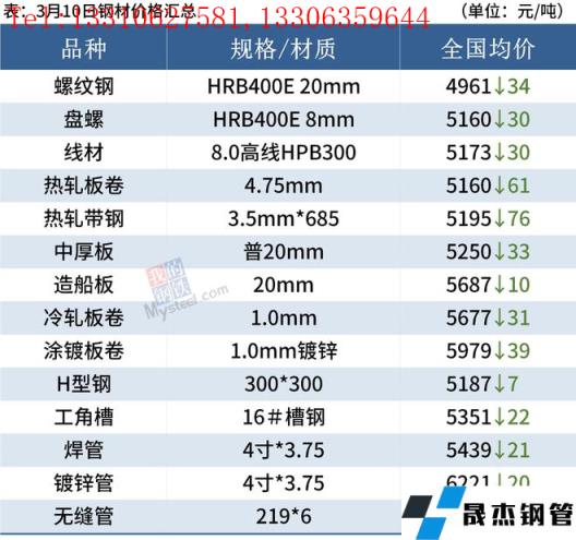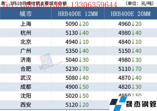 建筑厚壁無縫鋼管:3月10日,全國31個主要城市20mm三級抗震螺紋鋼均價4961元/噸,較上個交易日下跌34元/噸。本周供給繼續小增,庫存迎來拐點,且降幅尚可。綜合來看,目前供給仍然處于回升階段,但整體增量有限;需求方面,隨著天氣逐漸好轉,需求有所回升??紤]到近期國際形勢仍然不穩,短期現貨市場受情緒波動影響較大。因此預計11日國內建筑厚壁無縫鋼管價格將繼續窄幅趨弱為主。