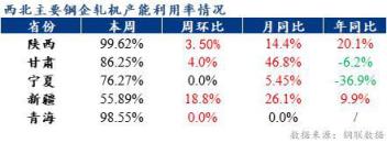 本周西北區域15家建筑厚壁無縫鋼管生產廠家48條產線實際開工43條,軋線開工率為89.58%,周環比上升6.25%;建材產線實際產量約67.06萬噸,周環比增加6.35萬噸,產能利用率為80.29%,周環比上升5.54%。
