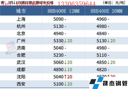 建筑厚壁無縫鋼管:3月11日,全國31個主要城市20mm三級抗震螺紋鋼均價4952元/噸,較上個交易日跌9元/噸。短期來看,近期產量回升有限,短流程無縫厚壁鋼管廠家受成本影響,生產不飽和;需求端,本周需求全面回升,且庫存出現拐點。綜合來看,近期供需雙增,但由于國際局勢不穩,現貨市場整體表現或維持窄幅震蕩為主。