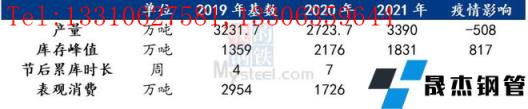 據樣本數據統計,以2020年疫情初發期間市場情況為例,以2019年數據為參考基數。受疫情影響,2020年春季樣本無縫厚壁鋼管廠家受疫情影響供給影響螺紋鋼產量508萬噸,同時春節后累庫周期增加3周,表觀消費減少1228萬噸,消費供給影響比約為2.42:1。
