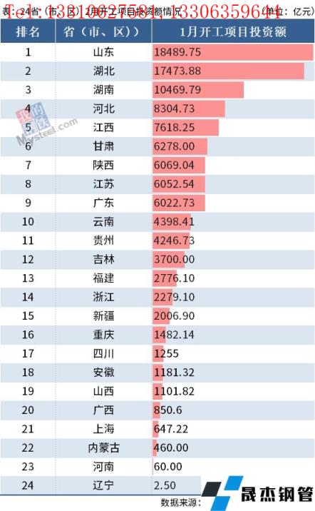 資料顯示,2月山東、湖北、湖南3省開工總投資額超萬億,分別為1.85萬億、1.75萬億、1.05萬億。